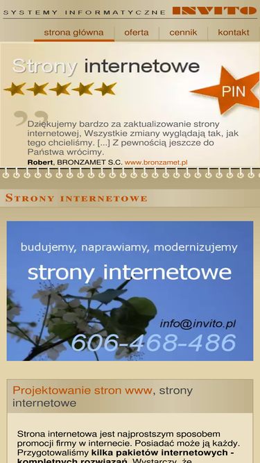 100%informatyczna obsługa firm - strony internetowe, firmowe serwisy www, systemy wspomagające zarządzanie, pomoc techniczna; doradztwo informatyczne, wdrożenia systemów, nadzór i administracja, szkolenie użytkowników, programy na zamówienie. invito.pl