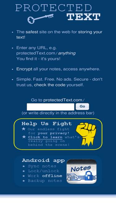 88%free secure online notepad on the web. this notepad with password makes it easy to store notes online without having to login. protectedtext is a free, simple and secure web notepad without ads.