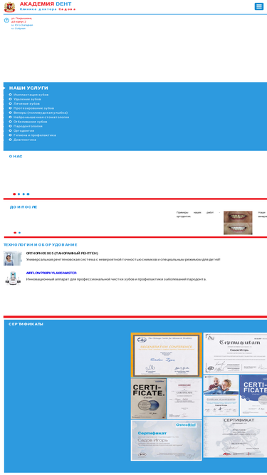 62%Услуги стоматологии "Академия Дент" на Юго-Западной в Москве. В клинике доктора Садова вы можете найти полный спектр услуг по стоматологии, такие как лечение, удаление зубов, установка имплантов и ортопедия.