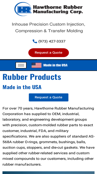 84%Hawthorne Rubber Mfg. Corporation is a trusted custom rubber parts manufacturer. We have been serving industrial customers since 1947. All parts made in the USA