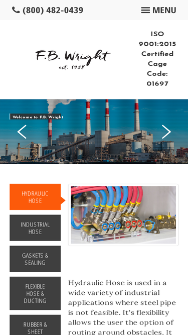 84%FB Wright specializes in hydraulic and industrial hose and fittings, adhesives, gasketing products, plastic, custom molded urethane parts