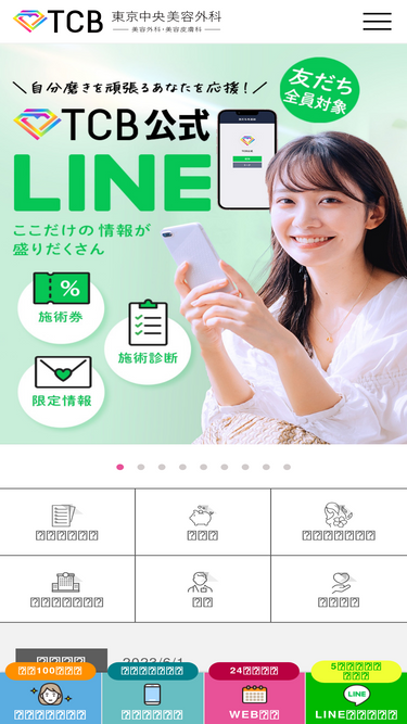 54%美容整形・美容クリニックのtcb東京中央美容外科のホームページです。tcbは二重整形や鼻整形、エイジングケアなどの美容整形・美容皮膚科を専門として、東京・大阪・名古屋・仙台・福岡など全国の主要都市に100院以上展開しています。美容外科医・美容皮膚科医の研鑽された手技で、患者様に適した治療を提供します。