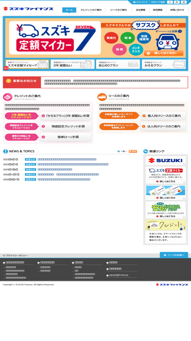 82%スズキファイナンス公式サイト。リース・クレジット等の金融サービスでスズキ製品をご利用のお客様に豊かなカーライフを提案いたします。