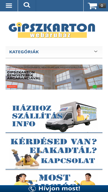 64%gipszkartonozáshoz rendelj meg mindent házhoz szállítva webáruházunkból! gipszkarton lapok | gipszkarton csavarok | gipszkarton profilok | gipszkarton szerelvények | fóliák | szigetelőanyagok és még sok minden más...