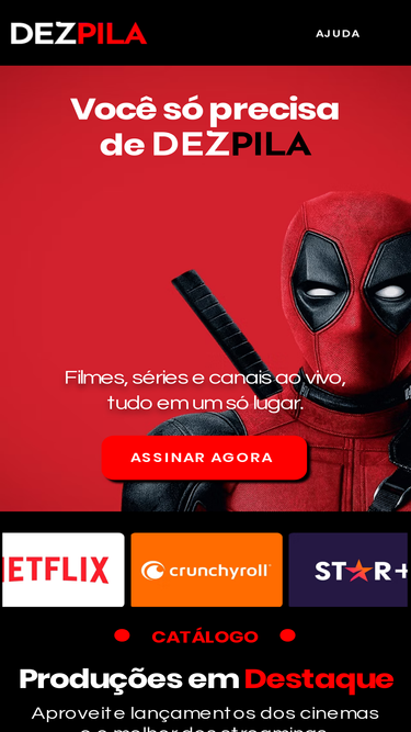 100%DezPila oferece acesso ilimitado a mais de 2 mil canais, incluindo Netflix, Disney+, HBO Max e muito mais, com pagamentos rápidos via PIX ou CARTÃO. Assista com qualidade e estabilidade por um preço acessível. Economize e tenha suporte dedicado para a melhor experiência de streaming!