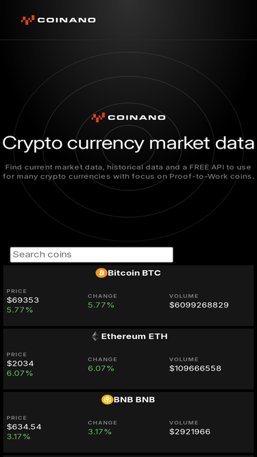 find current market data, historical data and a free api to use for many crypto currencies with focus on proof-to-work coins
