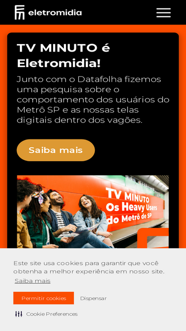 76%Eletromidia - Out of Home, transformamos trajetos em experiências, tanto na rua quanto em transportes, edifícios, shoppings ou aeroportos.