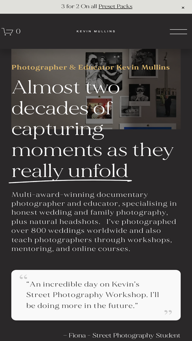 73%Learn authentic wedding storytelling with Kevin Mullins in The Art of Documentary Wedding Photography course. Capture genuine moments that truly matter.