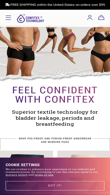 74%Your guide to men's health, wellness and managing inconvenient little leaks. Confitex's absorbent textile and underwear for bladder leaks will change your life!