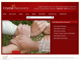 100%crystalrecovery.com offers information for addicts, family members, loved ones and friends reguarding the dangers of methamphetamines. information is also provided to try and help addicts seek treatment for their addicton to crystal meth.
