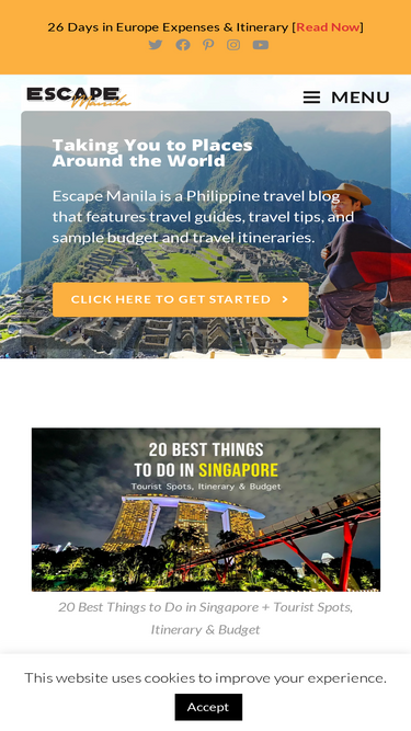 75%Taking You to Places Around the World Escape Manila is a Philippine travel blog that features travel guides, travel tips, and sample budget and travel