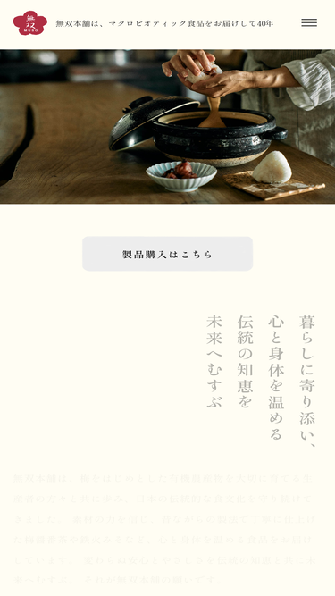 46%マクロビオティック食品をお届けして30年。ムソー食品工業は有機jas認証取得のオーガニック食品メーカーです。無双本舗おばあちゃんの知恵袋が販売しています。