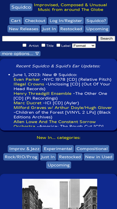 82%squidco sells cds, dvds, vinyl lps and magazines of unusual music in the fields of improvisation, compositional music, experimental, chamber rock, and rock in opposition