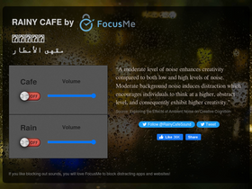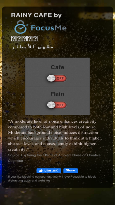 100%Enjoy background white noise to improve your creativity. Choose between rain, a cafe, or combine them for a rainy cafe.