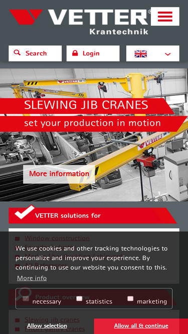 100%Entdecken Sie bei VETTER Krantechnik Standardlösungen und maßgefertigte Schwenkkrane, Portalkrane, ROTOMAX-Lastwendegräte sowie passendes Hebezeug.