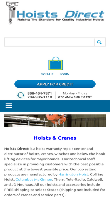 98%hoists direct is a distributor of high quality industrial hoist and crane components, including electric and chain hoists by harrington, coffing and more.