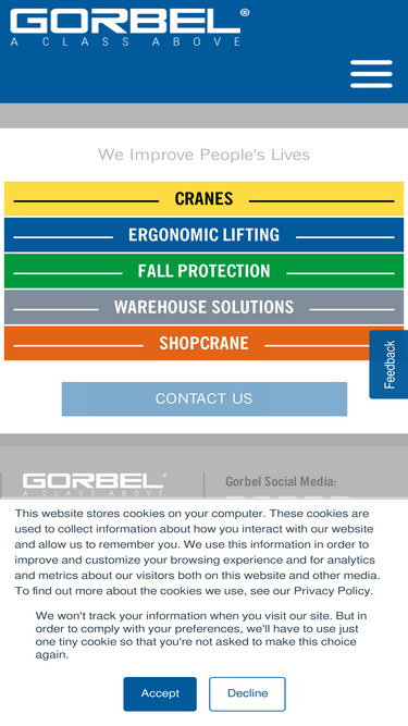 Discover Gorbel’s wide range of cranes, ergonomic lifting, fall protection, and warehouse solutions. Whether lifting 50 lbs or 40 tons, loading or unloading; we provide material handling solutions to enhance safety, productivity, and profitability. With 40+ years of expertise, we’re committed to improving people’s lives in every industry.