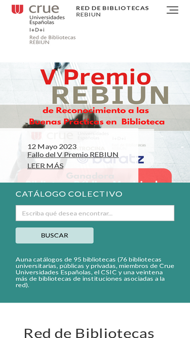 99%la red de bibliotecas universitarias españolas (rebiun) es la comisión sectorial de crue universidades españolas, en materia de cooperación bibliotecaria. agrupa a las bibliotecas de 76 universidades españolas, tanto públicas (50) como privadas (26), así como al csic, y otra serie de bibliotecas de instituciones científicas y de investigación.