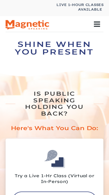 94%For professionals who want to deal with public speaking fear & anxiety In San Francisco & San Jose visit magneticspeaking.com Attend public speaking classes as well as online public speaking courses.
