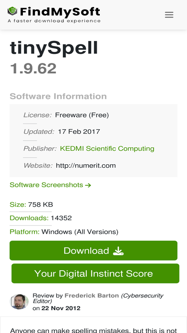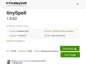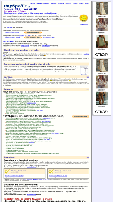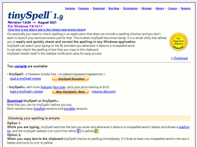 87%Download the latest version of tinySpell free. tinySpell checks for misspelled words and provides suggestions, as you type your text. It can notify you in different ways and it works with any Windows application.
