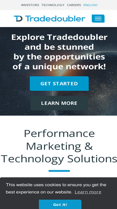 75%We empower a thriving partner marketing network where everyone wins. Brands, Publishers, Creators and Influencers alike. Established in Stockholm by Felix Hagnö and Martin Lorentzon, co-founder of Spotify, Tradedoubler swiftly ascended to become Europe's no. 1 Affiliate Marketing network, listed on the Stockholm Stock Exchange. Presently, we extend our Partner Marketing and Tech Solutions across +90 markets. While operating globally, our ethos remains deeply rooted in local authenticity.