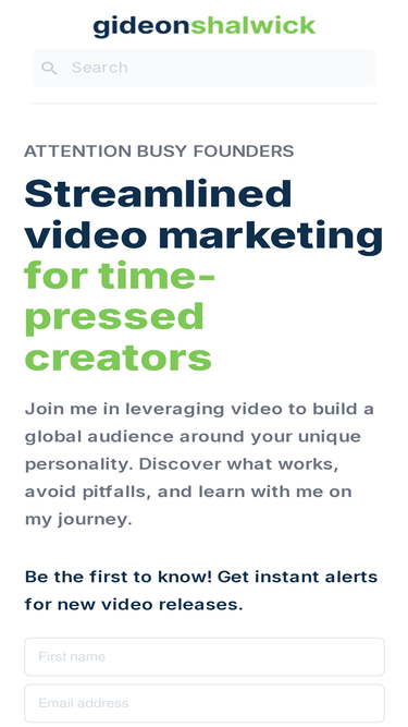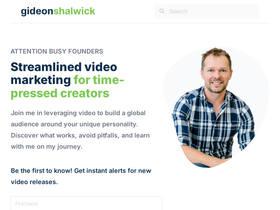 75%ATTENTION BUSY FOUNDERSStreamlined video marketing for time-pressed creatorsJoin me in leveraging video to build a global audience around your unique personality. Discover what works, avoid pitfalls, and learn with me on my journey.Be the first to know! Get instant alerts for new video releases. Subscribe I care about the protection of your data. Read my Privacy Policy.