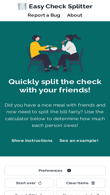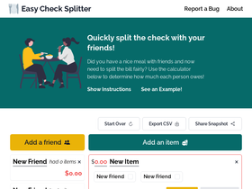 98%Split the check and save your friendships with Easy Check Splitter. Assign items to friends and fairly divide the bill, including tips, for stress-free shared meals.