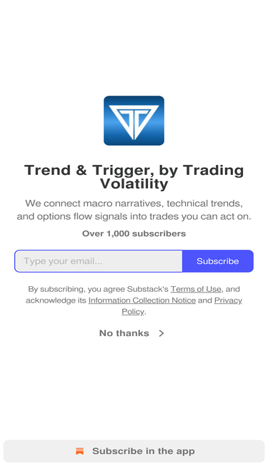 85%We connect macro narratives, technical trends, and options flow signals into trades you can act on. Click to read Trend & Trigger, by Trading Volatility, a Substack publication with hundreds of subscribers.