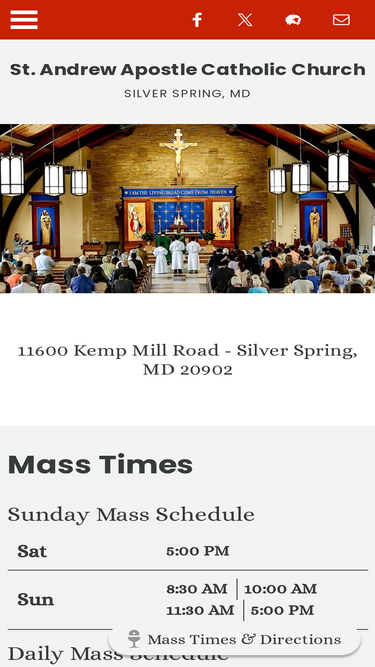81%St Andrew Catholic Church - Silver Spring, MD 20904 The Mission of Saint Andrew Apostle Parish is to spread the Good News of Jesus Christ by living our faith as a Catholic Community in worship, service, and support of one another. We believe that each member is called to discipleship, outreach, and evangelization to our parish and local community. We celebrate the gift of Jesus by growing in our faith and living out the mission of our fidelity to the Roman Catholic Church.