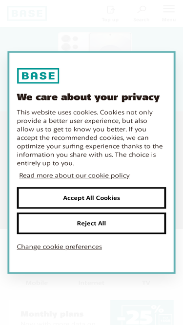 84%At BASE you only pay for the services you really need. A mobile, internet or TV subscription? A prepaid card? You decide.