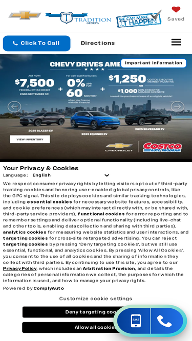 62%Tradition Chevrolet Buick is a Geneva Chevrolet Buick new and used car dealership serving Canandaigua and New York. We provide new and used GM cars, trucks, and SUVs. Also, scheduling service appointments and ordering parts online is easy with Tradition Chevrolet Buick website.