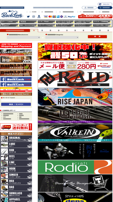 backlash/バックラッシュは岐阜県岐阜市にあるバス・トラウト・ソルトのルアーフィッシング通販ショップです。ブラックバス釣りを中心に釣具用品に関しては国内トップクラスの品揃えをしております。ルアー、ロッド、リール、ライン(糸)、フック(針)など、初心者の方にも安心してご購入して頂けるよう心がけております。dm (japanese domestic market) fishing tackle