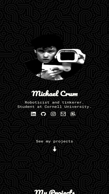 83%michael crum portfolio and blog website. featuring writings on robotics, computer graphics, and video game design.