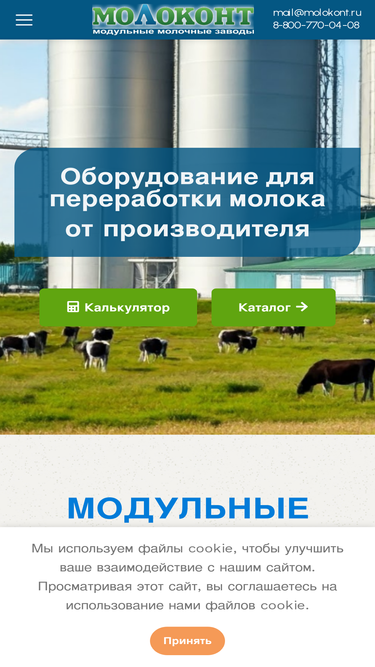 99%Группа Компаний «МОЛОКОНТ» работает на рынке с 2000 года и специализируются на производстве промышленного оборудования по переработке молока, мяса, рыбы, овощей, производству хлеба, комплексному технологическому проектированию, производству «под ключ» молочных ферм и заводов.