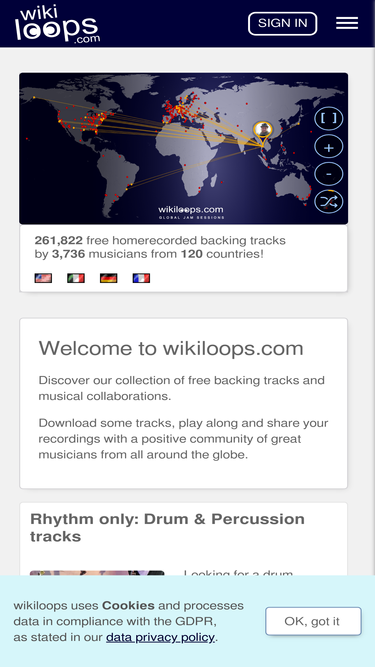 94%Sign in to your wikiloops collaborators account and join our online jam-session by sharing your homerecorded tracks with musicians from all around the world.