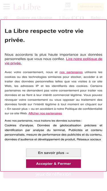92%Avec lalibre.be, suivez en direct toute l'actualité en Belgique et dans le Monde, les news environnementales, les nouveautés économiques et culturelles... Bénéficiez également de contenus argumentés sur des sujets d'actualité et d'infos sur votre région.