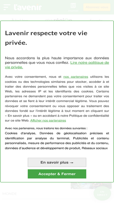 96%Retrouvez toute l'actu en direct de votre commune, de la Belgique et du monde entier sur L'avenir.net. Nos journalistes vous garantissent une info de qualité, 24h/24, dans tous les domaines : politique, sport, économique, lifestyle, etc.