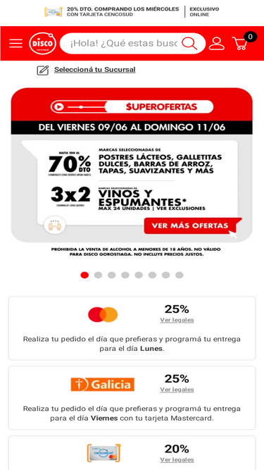 88%¡En Disco tenemos todo lo que necesitás! Comprá online sin moverte de casa: aprovechá la gran variedad de descuentos que Supermercado Disco tiene para vos