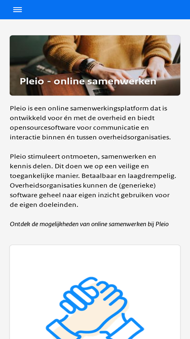 89%Online samenwerken binnen en over de grenzen van je organisatie. Pleio maakt het mogelijk. Binnen acht uur staat je platform live
