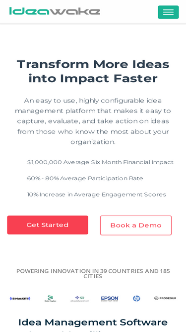 85%Industry leading software powering innovation programs in 35+ countries around the world. Empower your workforce. Innovation challenges. Hackathons. Continuous Improvement.