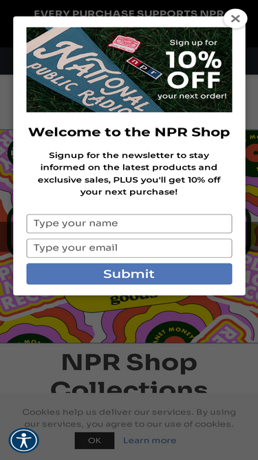 100%NPR Shop Terms of Use Updated October 1, 2025 See related: NPR Privacy Policy Introduction; Consent to Terms Please read this National Public Radio, Inc. (“NPR”, or “we”) Terms of Use Agreement (“Terms of Use”) before using NPR’s site at shopnpr.org or any other site redirecting to shopnpr.org, including shop.npr.o