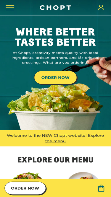 88%at chopt, we dream up the most delicious salads imaginable. it's where creativity meets quality with local ingredients, artisan partners, and 18+ original dressings.