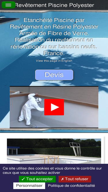 revêtement d'étanchéité piscine en résine polyester stratifié réalisé par le spécialiste francilien, sur bassin neuf ou en rénovation.