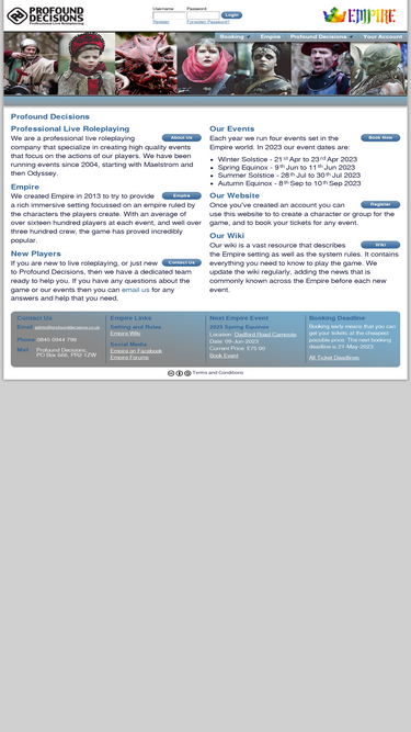 100%We are a professional live roleplaying company that create high quality events. The actions of our players are at the heart of our games, Empire and Odyssey.