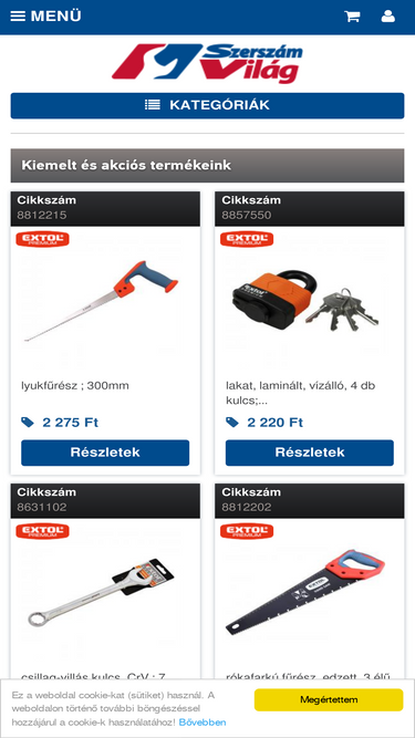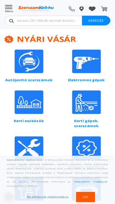 87%Kéziszerszámok, szerszámgépek széles választékával várjuk kedves látogatóinkat! Termékeink között szinte mindent megtalál, ami a ház körüli munkákhoz szükséges.