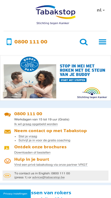 58%tabakstop is een gratis dienst waarmee u contact kan opnemen als u hulp nodig hebt om te stoppen met roken.