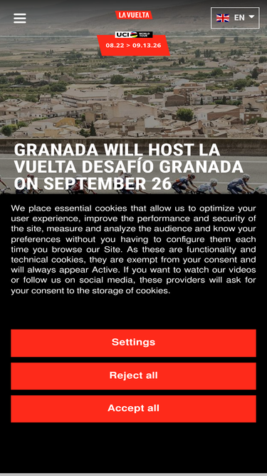 82%La Vuelta is one of the leading cycling races in the international calendar. 21 stages, three weeks of competition between August and September, and more than 3,000 km covering the Spanish geography, and from other countries such as Andorra, Belgium, Fran