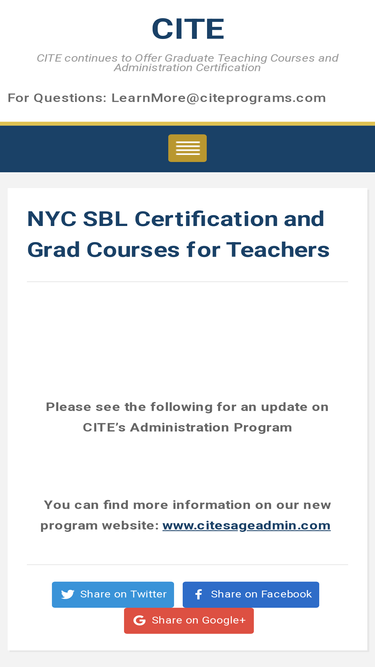 97%NYC SBL Certification, Masters in Administration, Special Ed courses, Guidance courses, in NYC and Long Island, with CITE. Weekend Classes.