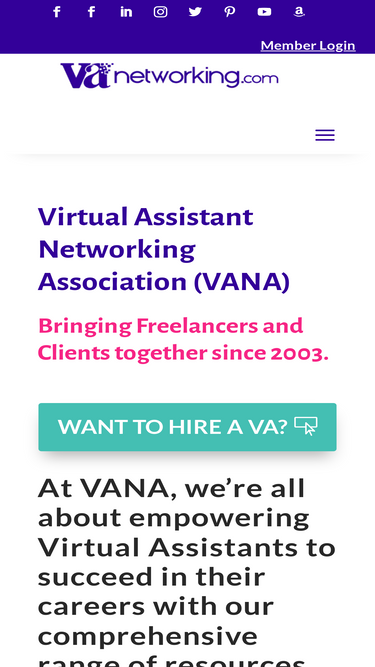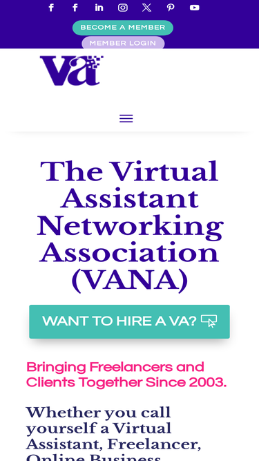 87%Join the Virtual Assistant Networking Association (VANA), empowering VAs since 2003. Access specialized training, resources, and a vibrant community of professionals. Start or expand your Virtual Assistant career with our proven support network!