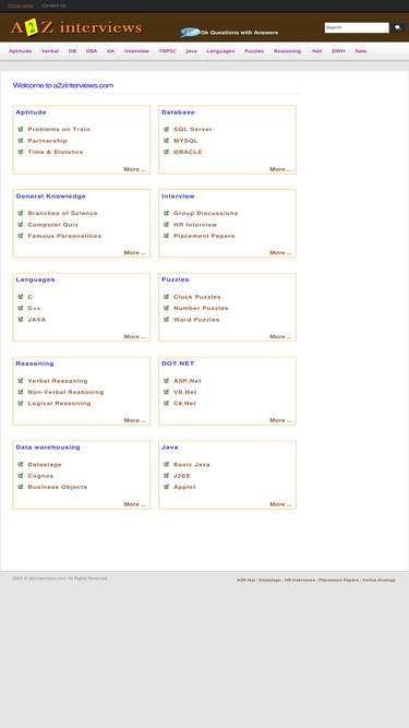 85%this site caters to the requirements of students who aspire to prepare and develop reasoning, non-verbal & verbal, skills for various competitive examinations. varius interview questions available.